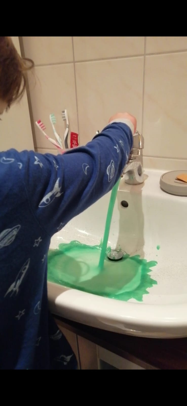 Ravi steuerte sofort das Bad an, um seine sandigen schmutzigen Hände zu waschen. Doch er staunte nicht schlecht, als er den Wasserhahn aufdrehte. Denn es floss kein klares Wasser, es floss Sekunden lang nur grünes Wasser.